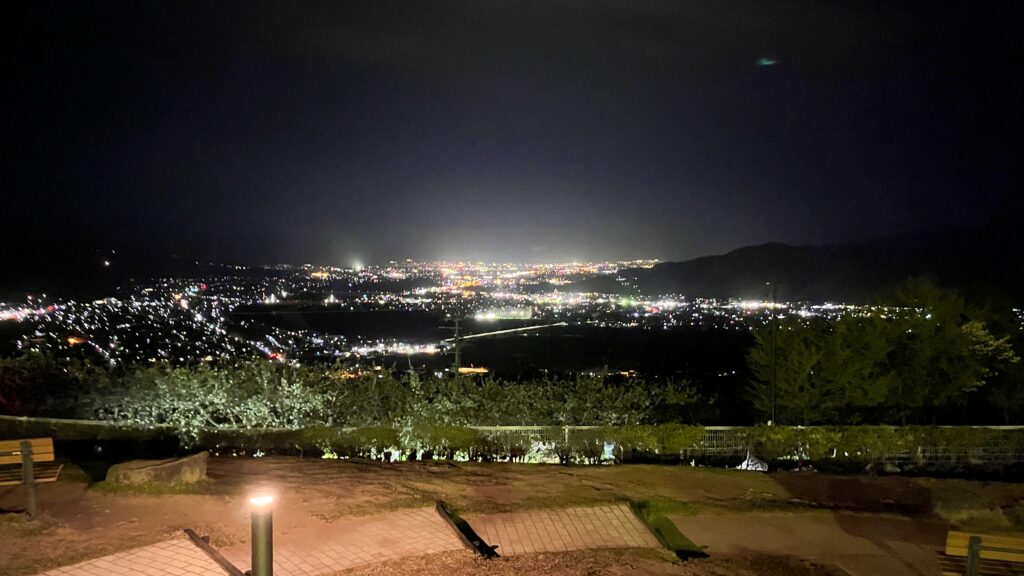手前が千曲市で奥に長野市の街明かりです。