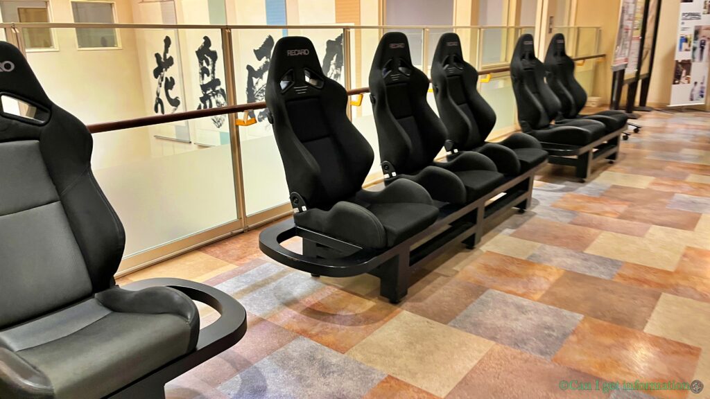 レカロシートの休憩ベンチ。遊び心があって面白い。しかし、トレッサ横浜はトヨタディーラーが入っていたり、フランス風の内装以外(特に南棟)は、普通のショッピングモールという感じです。