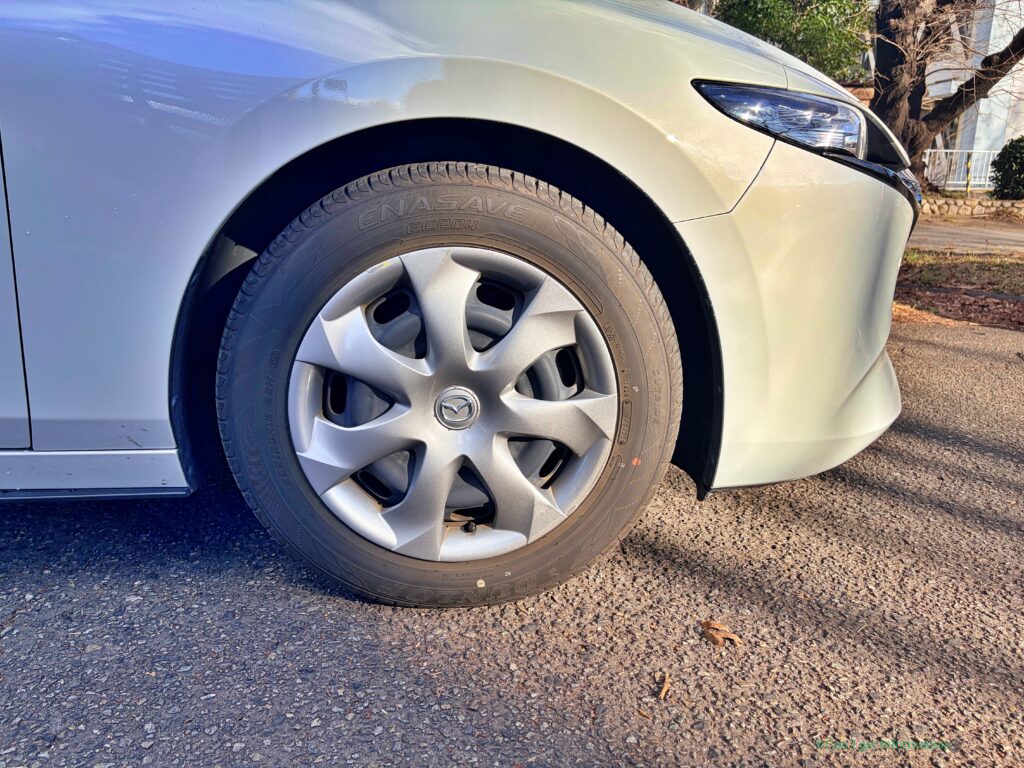 エントリーグレードなので、スチールホイールにホイールキャップが装着されています。