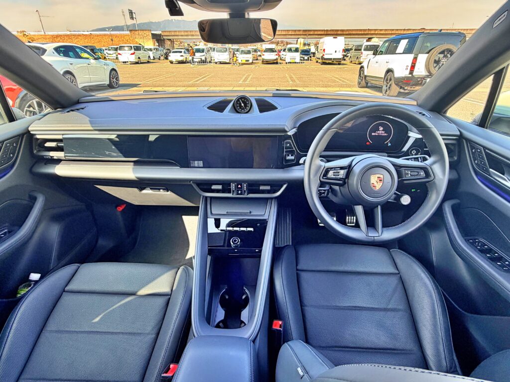 前席です。EVやSUV関係なく、これぞポルシェの内装です。特段に派手な高級感はなく、ナビも必要最低限の小さなサイズで、走りに重視している印象を受ける、まるでスポーツカーのようです。