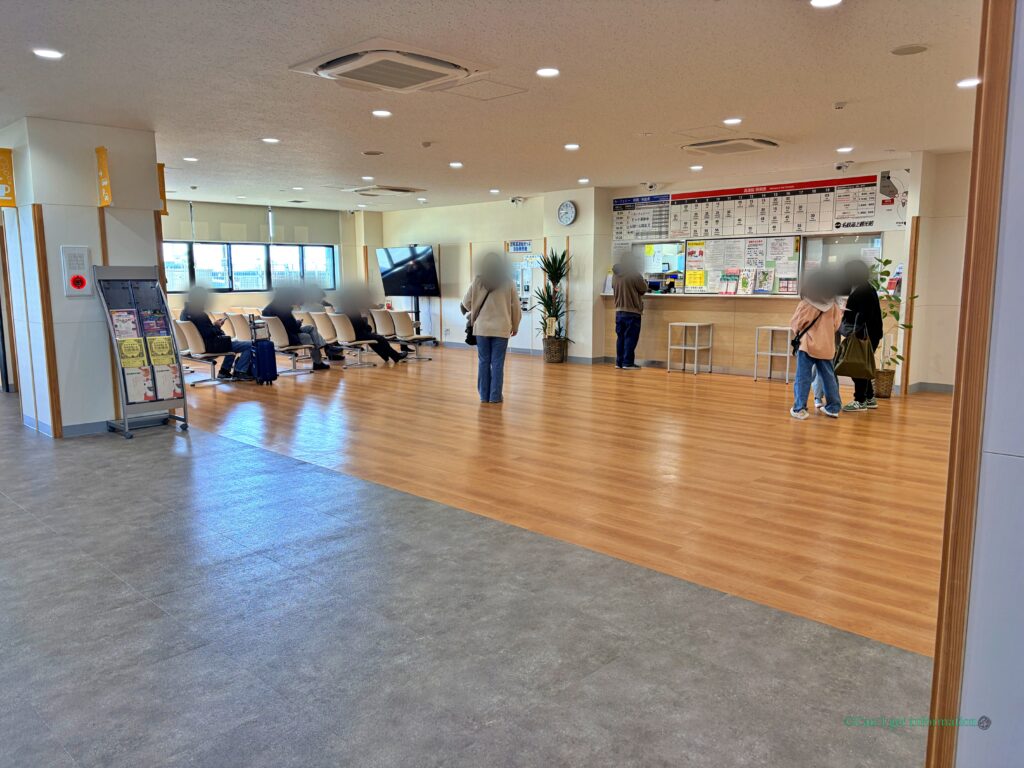 正面右側の扉の先にあるバス待合室です。